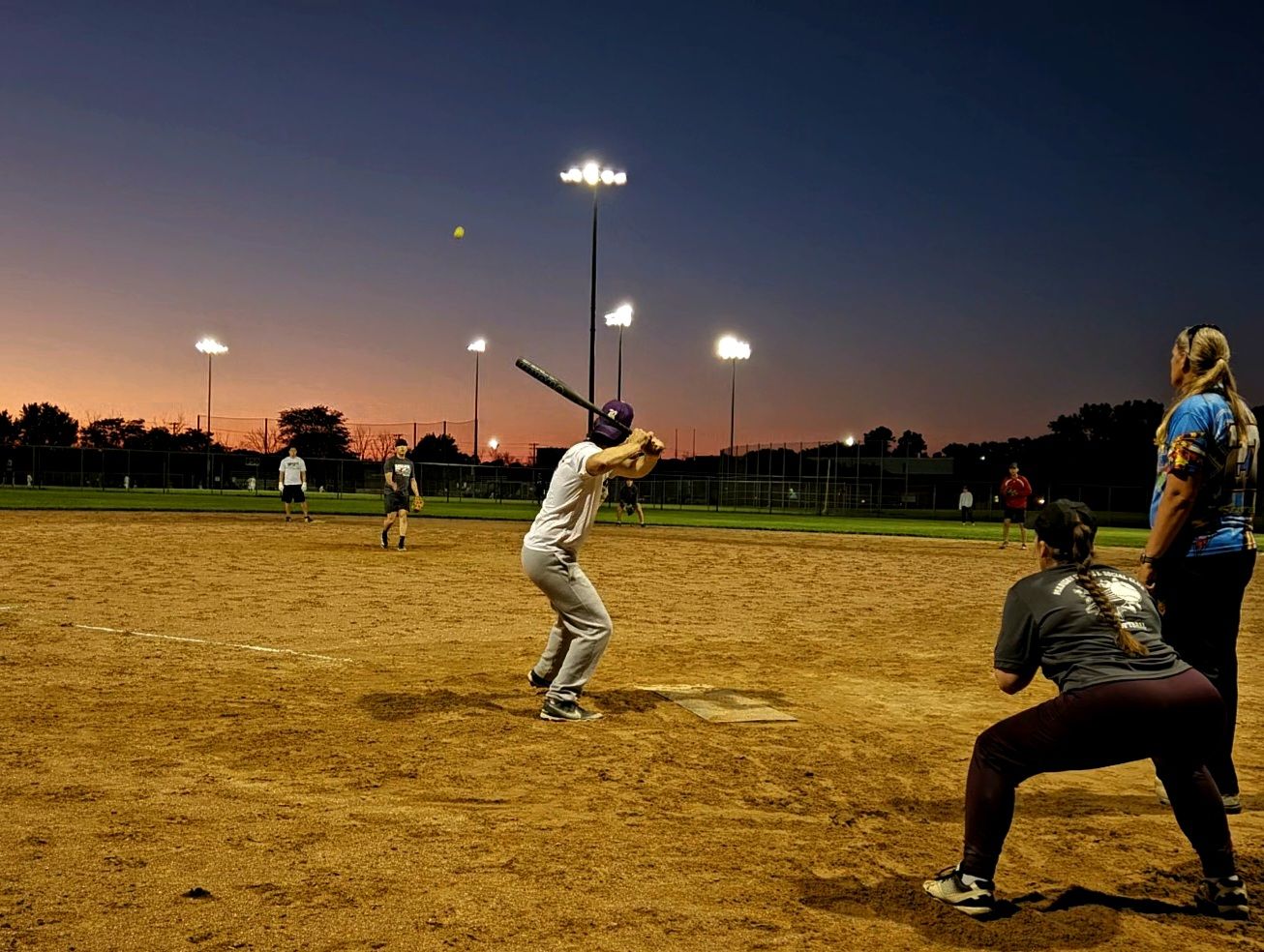 After a 14-day interlude thanks to rain, Sea Kittens (1-1-1) were back in action at Bowman Park July 17 in a Thursday night matchup with familiar foes Bat & Boujee (2-1-1).   B&B jumped to a commanding early lead, but the Cats roared back late and hung on for a 12-12 tie. Bat & Boujee jumped to an early lead in the game behind a mix of stout defense snagging a number of very hard-hit balls